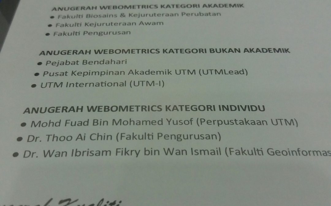 Alhamdulillah, UTMLead buat pertama kalinya telah tersenarai sebagai finalist bagi Anugerah Webometrics Kategori Bukan Akademik dalam Majlis Citra Karisma 2017.